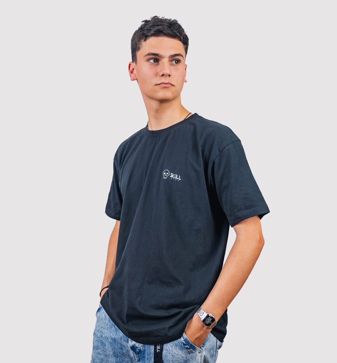 Transforma tu rutina con nuestra polera básica SKULL BLACK, una pieza esencial que fusiona la simplicidad con la moda moderna. Es 100% algodón garantizando una experiencia de uso suave, mientras que su diseño te permite destacar en cualquier entorno. Esta polera se convierte en tu mejor opción para expresar tu autenticidad en medio de la naturaleza y la ciudad, combinando estilo y confort en cada detalle.